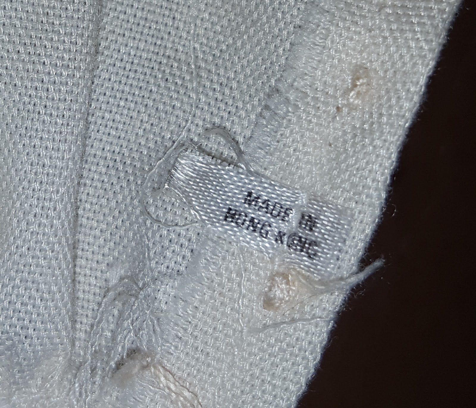 The interior of this dress is so-so. It's tagged inside the right edge, with a tag that reads the ever-popular MADE IN HONG KONG.
