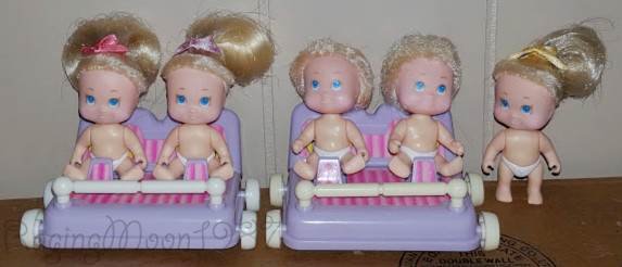 Often when I revisit a toy that I owned during childhood I learn about some of the accessories that accompanied said toy, and the Quints are no exception. I had no idea that there were little strollers available.
