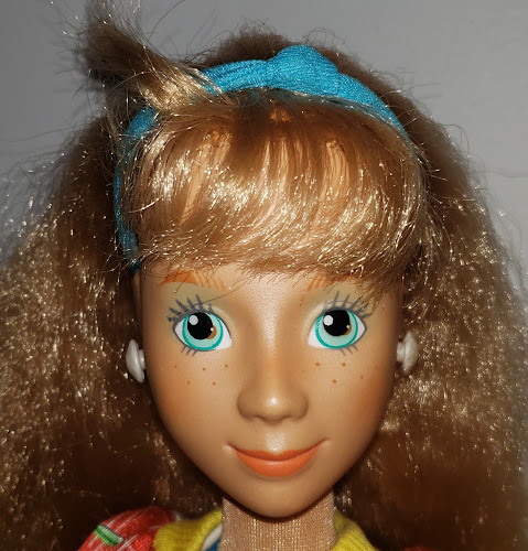I don't like the bangs on these dolls because they're next to impossible to control, but that's the fault of age, not the dolls themselves.  Very few dolls with bangs make it through the years without their bangs getting at least a little mussed.  I was able to fix Chelsea's and Sachi's bangs even though Sachi's were snarled up in her main hair, but C.C.'s bangs have proven stubborn.