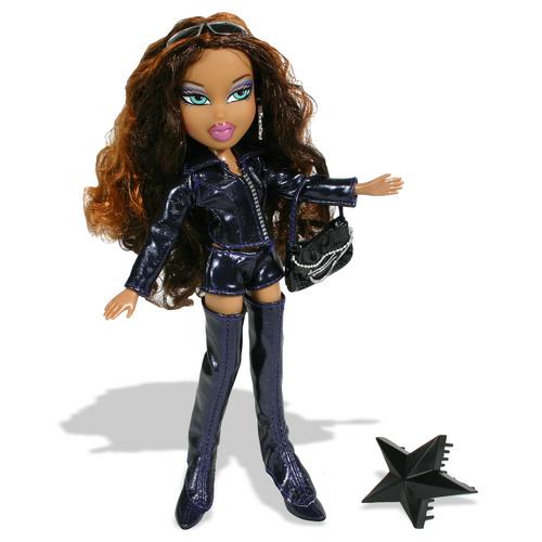 When I was...oh gosh, I think it was spring of 2002 that Daddy asked me at dinnertime "Hey Moon, do you like those new Bratz dolls?"  Daddy was kinda a stickler for dressing modestly, so when he asked me about the scantily clad Bratz I was shocked and surprised.  I was even more shocked when he asked "Would you like one for Easter?"  After school the next day we went to Wal-Mart and I pointed out my favorite one.  I knew her as Jade, and Daddy knew her as "the black-haired doll in the funny-lookin' sock hat."  Easter came, Jade was nestled in my basket, and I was thrilled.  Jade and my What's Her Face doll Meredith were best friends for many years.  Pity that I didn't have a camera back then, because they were all over my room in various positions, some cute, some glamorous, and some silly (I posed Meredith in a headstand once).  Daddy laughed at that one.  That Christmas Cameron joined the club, and the three went everywhere together, just like Barbie, Ken, and Midge did in the sixties.  I should probably note, by the way, that that first wave of Bratz wasn't quite as scantily clad as later waves.  Sasha even mentions that she loves jean skirts.  LOL, I never noticed that until now!