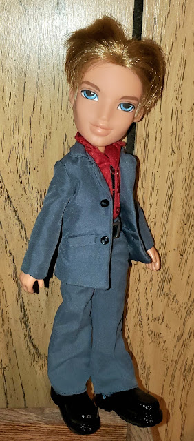 I rest my case! Once again MGA paired a long-sleeved shirt with a jacket, but I didn't have too hard a time getting the jacket in place. No, the hard part here was getting the shirt on, because the cuffs of the sleeves were very tight. Still, Cameron does indeed look like he's ready to head off to school, especially on a chilly day like today. If one of my high school guy friends was feeling particularly dressy during the winter, he might've worn something like this. I only knew one guy who did habitually dress like this, and he was the school heartthrob so it would make sense for him to be stylish. Seriously, everyone loved that guy, all the girls (and probably one or two of the guys) had at least a little crush on him, and he was popular because he was nice to everyone, not just because he was attractive and well-dressed. It CAN be done, kids! Popularity can be achieved just by being kind, though it does depend on what the rest of the student body is like too. Anyway, I like to pretend that Cameron is like my friend, kind to everyone AND a sharp dresser all in one.