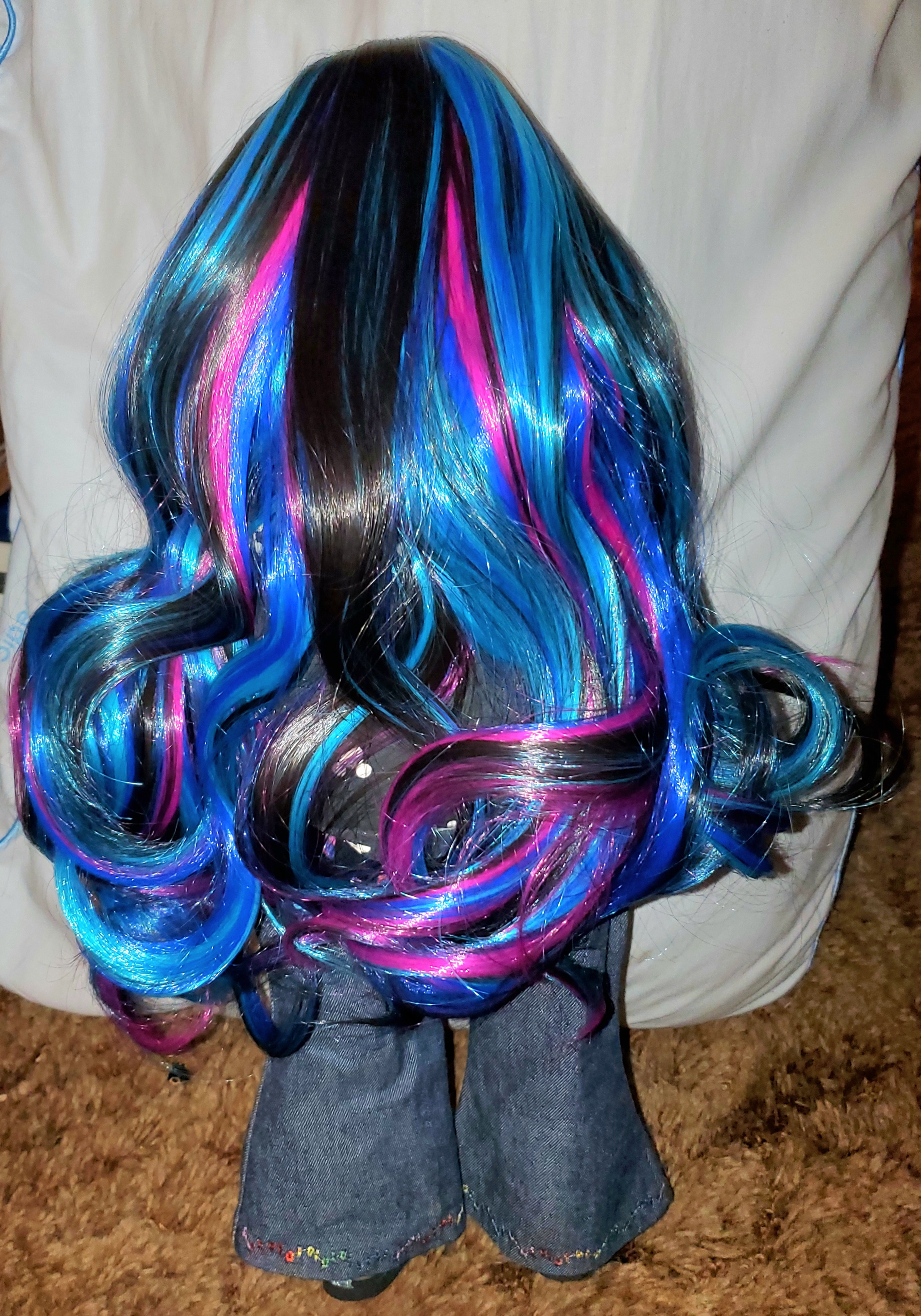 I once wanted blue hair as badly as the Doctor wants red hair, but dyeing my hair seems a little pointless now so I live through my dolls. Much cheaper, much less upkeep.